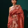 A red-striped silk saree typically features bold, contrasting stripes on a base of vibrant red silk fabric. This combination creates a striking visual appeal, suitable for festive occasions and celebrations. The stripes may vary in width and colour, adding a dynamic element to the traditional elegance of the silk saree.”