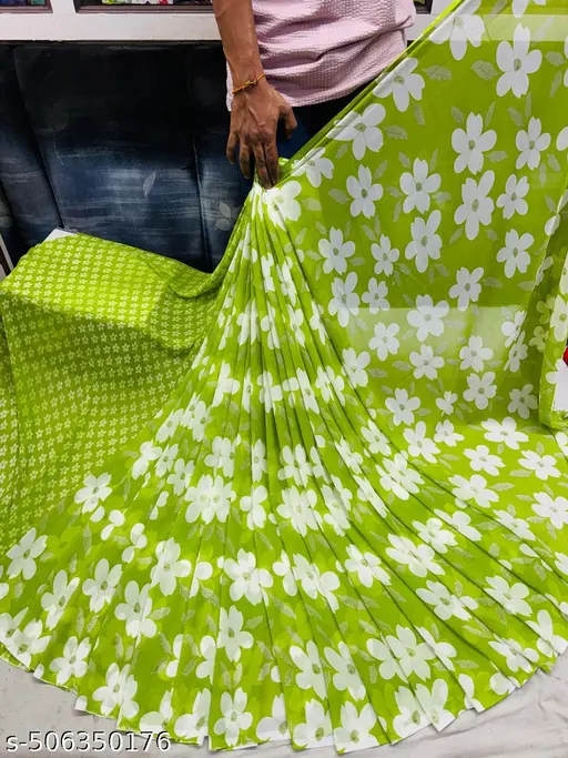Kanooda Prints Fancy Women’s Georgette Printed Sarees.